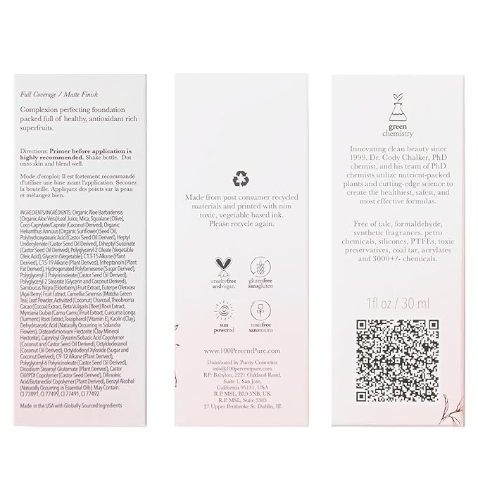 100% PURE Fruit Pigmented Healthy Foundation, Alpine Rose, Liquid Foundation Makeup, Anti-aging, Full Coverage, Matte Finish - 1 Fl Oz