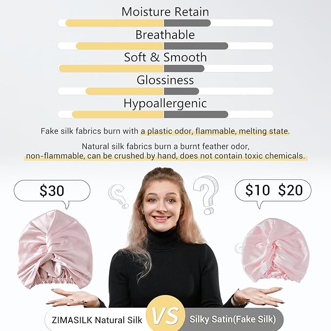 - ✅Gift-Worthy & 180-Day Warranty: Ideal for sleeping, housework, yoga, or relaxation, this luxury silk bonnet makes a thoughtful self-care gift for loved ones or Just Spoil Yourself! If you encounter any quality issues, our 180-day warranty covers you. Simply contact us, and we'll resolution within 24 hours. Shop with confidence at ZIMASILK.