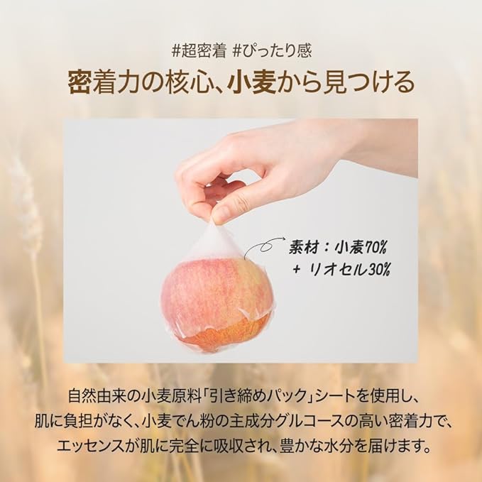 - [High Adhesion Sheet] Wheat fiber sheet adheres closely to the skin to maximize absorption of the hydrating essence.