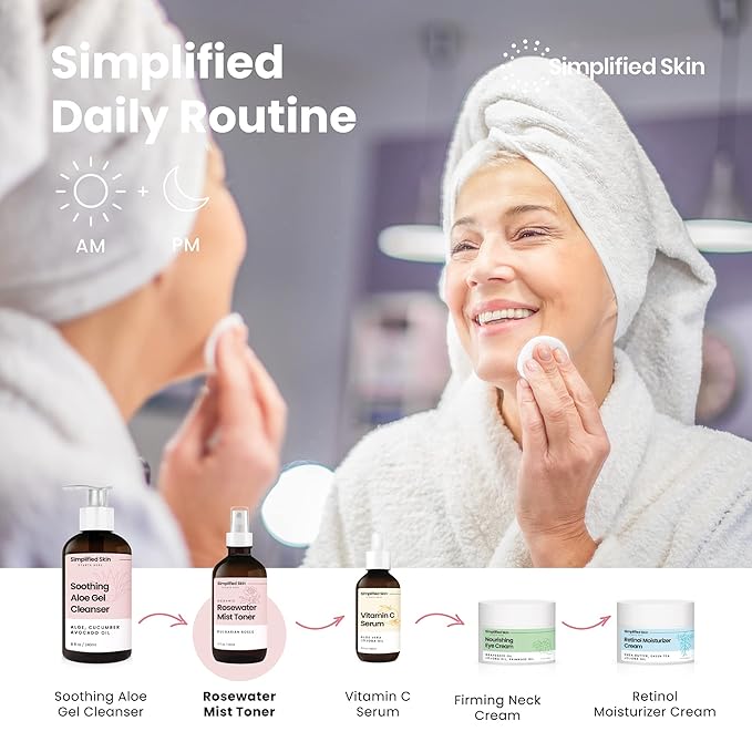 - USDA-Certified Organic Rose Water Spray for Face & Hair: Simplified Skin rosewater spray delivers soothing hydration with every spritz. Made from Bulgarian rose water, it refreshes and revitalizes the skin, hair, and body.