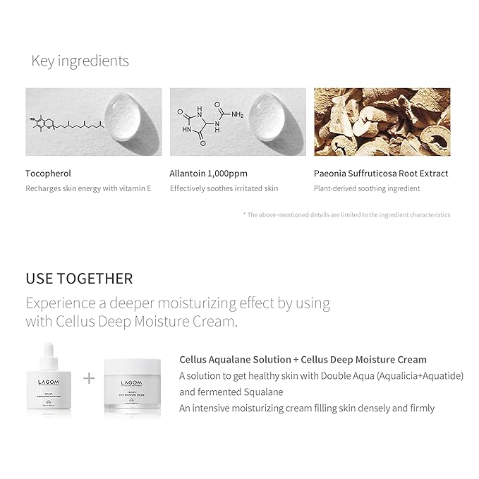 LAGOM Cellus Aqualane Solution | Korean Serum for Face, Vegetable Squalane, Skincare for Glass Skin, Deep Moisturization, Barrier Strengthening 1.69 Fl Oz
