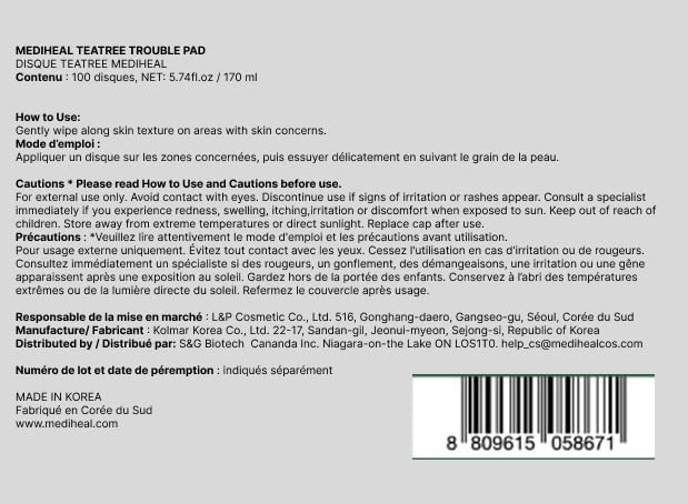 MEDIHEAL Teatree Trouble Facial Toner Pads with Tea Tree & Lactobacillus - Calming & Soothing for Sensitive & Acne Prone Skin - Vegan Face Gauze, 100 Pads