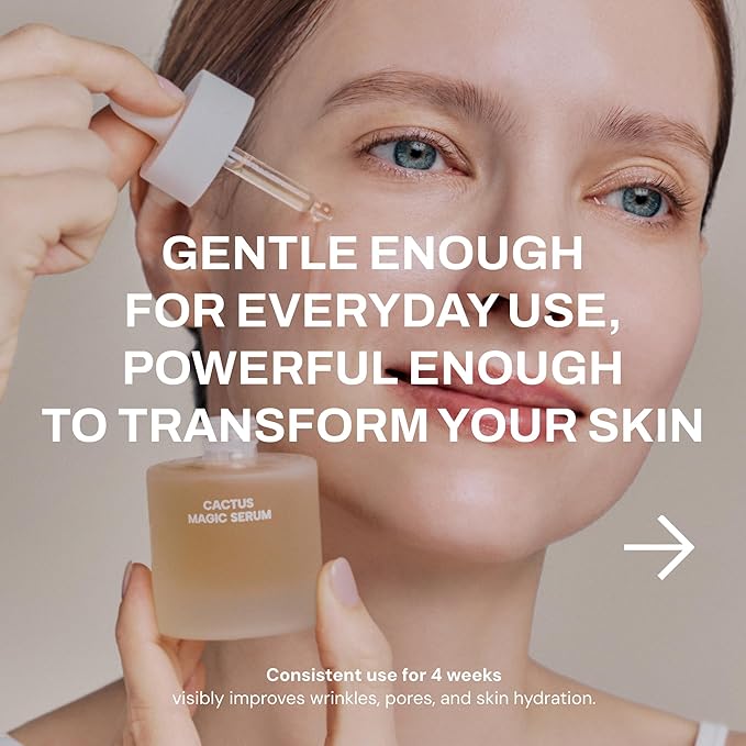 Whamisa Organic Cactus Magic Serum, Anti-Wrinkle & Brightening, Rejuvenation, Strengthen Skin Barrier, Probiotics, Hydrating, Facial Ampoule, Pore Refining (32ml)