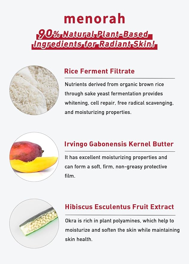 - 【Active Ingredients】: Saccharomyces/Rice Ferment Filtrate, Irvingia Gabonensis Kernel Butter, Hibiscus Esculentus Fruit Extract