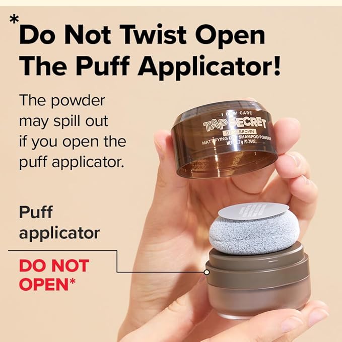 - ABOUT Tap Secret Dark Brown: Your Grease-Busting Companion - Introducing Tap Secret Dark Brown, the benzene-free ultra-fine dry shampoo powder in a 7g / 0.24 oz. tub. This hypoallergenic, non-aerosol gem is your guilt-free solution for instantly fresh hair.