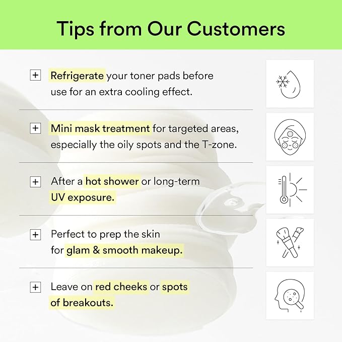 - Hydrating & Pore-Tightening Formula – Soaked in a lightweight, refreshing toner, these pads provide deep hydration while helping to minimize pores, balance oil production, and prep the skin for better absorption of serums and moisturizers.