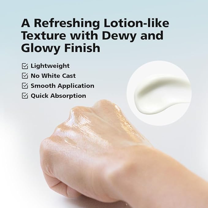 - 【LIGHTWEIGHT & STAY HYDRATED ALL DAY】Our sunscreen has a sheer, lotion-like texture that leaves your skin feeling breathable, dewy, and radiant. Formulated with hyaluronic acid ensures your skin stay moist and smooth throughout the day without drying out.