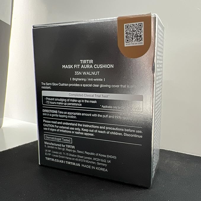 TIRTIR Mask Fit Aura Silver Cushion Foundation | Semi-glow Finish, Natural Coverage, Moisturizing, Lightweight, Korean cushion foundation (#35N Walnut, Full Size, 0.63 Fl Oz)