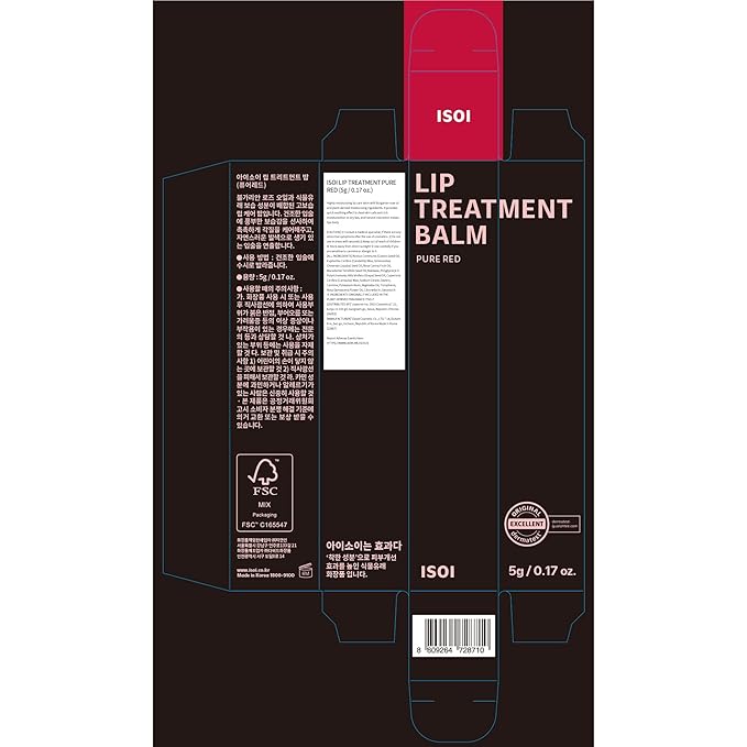 ISOI Bulgarian Rose Lip Treatment Balm (Pure Red), Tinted Balm for Dry Lips, Korean Skincare (0.18 oz, 5g)