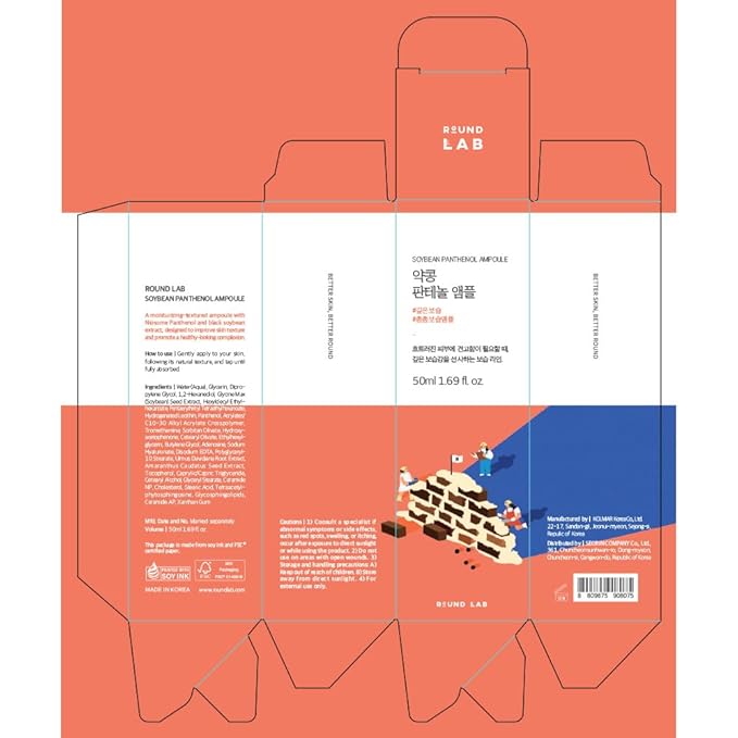 ROUND LAB Soybean Panthenol Ampoule 1.69 Fl Oz, Deep Hydration Serum with Nano Niosome Panthenol, and Ceramides for Skin Barrier Strengthening and Non Sticky Moisture Retention, Korean Skincare