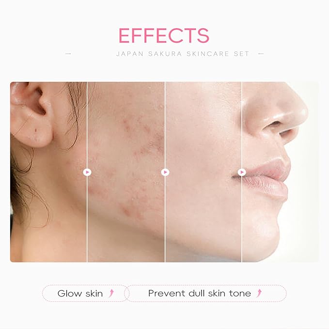 - 【DAILY SKINCARE ROUTINE: 】Our sakura skincare set can stimulate collagen, reduce fine lines and wrinkles and nourish the skin. Reduce puffiness, eye bags, crow's feet and dark circles, lift and tighten the skin around eyes. Keep lips moist and repair chapped lips. Skin care sets & kits achieve long-lasting moisturizing and skin care effects.