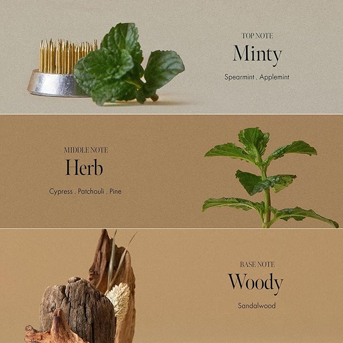 - Signature Scent with Herbal-Woody Notes : Top notes of mint, heart notes of herbaceous pine and patchouli, and a sandalwood base create a sophisticated, gender-neutral scent that lingers subtly in the hair.