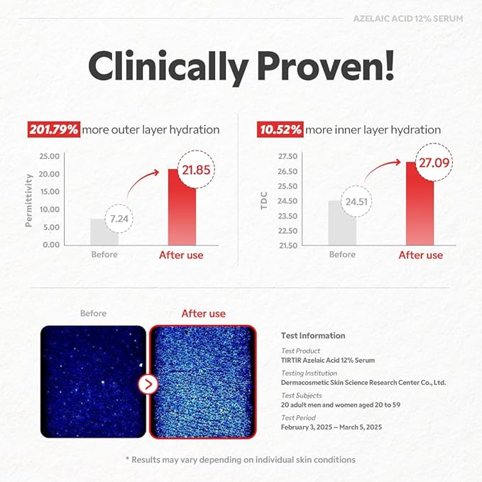 TIRTIR Azelaic Acid 12% Serum for Blemish-Prone Skin - Lightweight Hydrating Formula with Zinc PCA & Hyal-ZIP, Non-Comedogenic, Fragrance-Free, 30ml / 1.01 Fl Oz