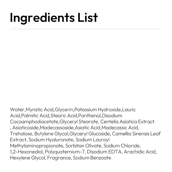 - SOOTHING & HYDRATING INGREDIENTS: Features a blend of skin-loving ingredients including Panthenol 2% , Trehalose , Glyceryl Glucoside , Centella Asiatica Extract , and Green Tea Extract to leave skin feeling hydrated, soft, and comfortable without tightness