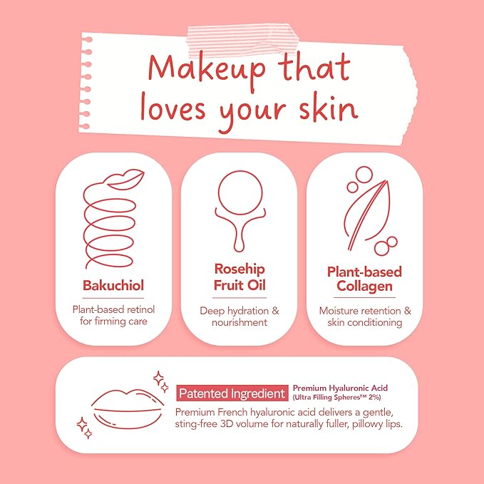 - Long-Lasting Hydration & Plumping – Infused with 10 types of fruit seed oils and plant-derived collagen, this makeup locks in moisture, gives a juicy plump effect, and keeps your skin glowing all day.