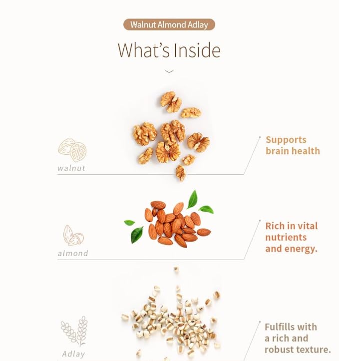 - Nutty and smooth taste made with walnuts, almonds, and adlay (job’s tears)