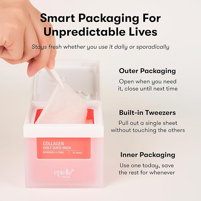 - STAYS FRESH BETWEEN UNPREDICTABLE FACE MASKS USE – Smart packaging with resealable lid and built-in tweezers keeps each Korean beauty face mask potent for months. Pull out one sheet mask for women when your skin looks tired or before big events—no schedule required for these korean face masks skincare.