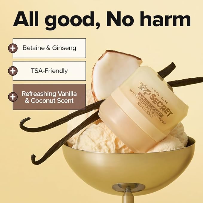 - NEW SCENT ADDED: The I DEW CARE Tap Secret Dry Shampoo now comes in a Warm Vanilla & Coconut Scent. Enjoy oil-free, revived hair that smells amazing and feels fresh after every puff.