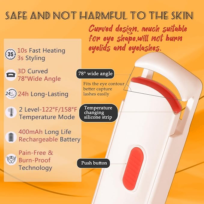 - Adjust Temperature Mode - Our heated eye lash curler comes with 2 temperature settings from 130°F to 185°F to gently curl your lashes and create stunning curls for amazing curling effect for different types of eyelashes, will not frizzing or pinching them